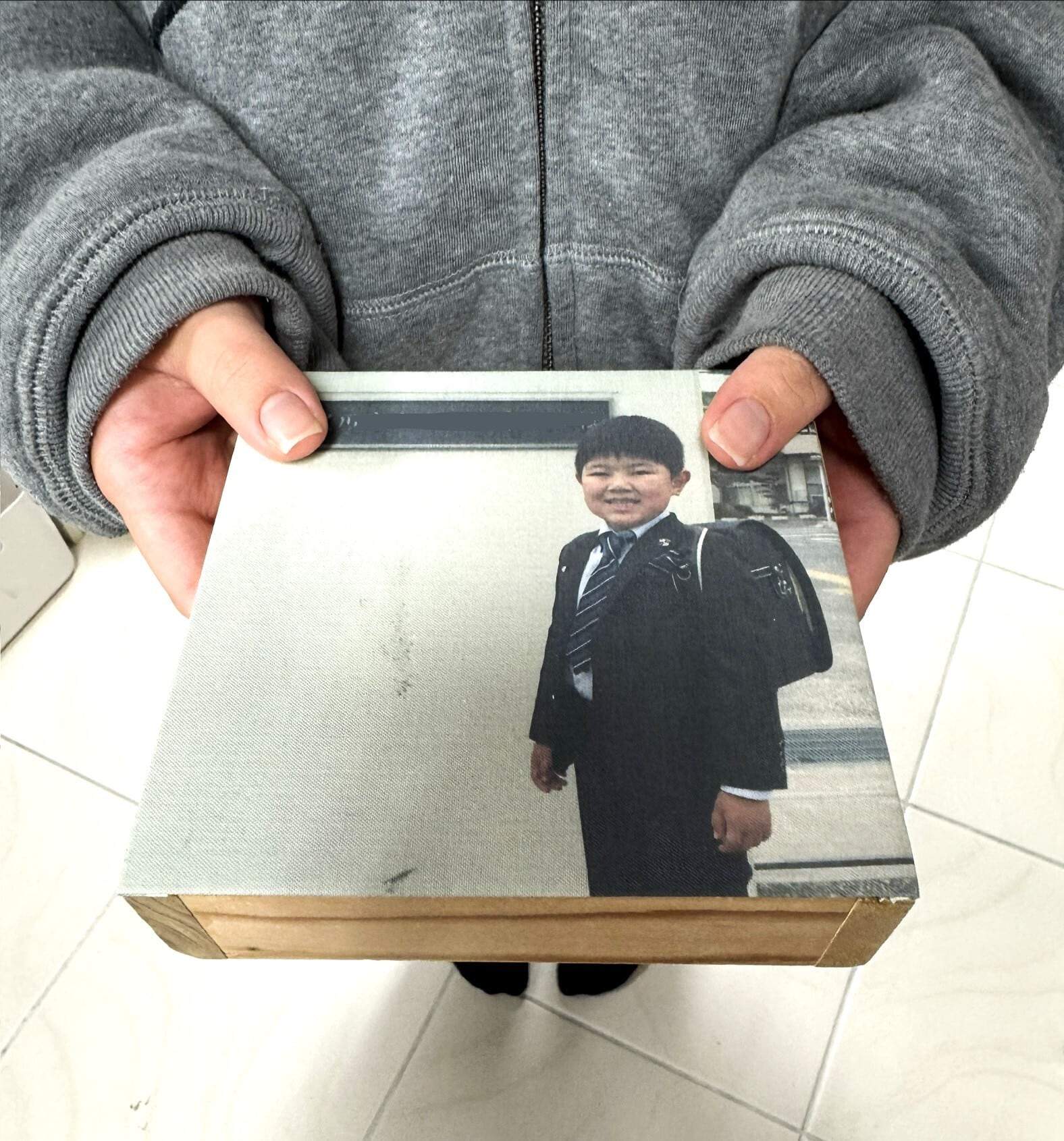 贈りたい相手が遠方の場合、プレゼントBOXに入れてお届けします。 写真・画像をお預かりし、生地にプリントした画像と木製のパネルを受け取った方が組み立てて完成します。 (画像の送信方法については、下記の【重要】を必ずご確認ください。) 置いても、壁掛けでも、お好きな飾り方で楽しめます。 ▼ご自身で撮影したスマホのスナップ写真 ▼写真館で撮影した写真データ ▼好きなお花の写真 ▼こどもさんの絵のスキャンデータ など、画像ならOK。 お気に入りの写真をいつも愛でる幸せを体感してください。 【規格】 サイズ:13.5cm スクエア・厚み3.5cm ※組立式 材質:布・木材 ※組立には、同封の木工用ボンドをご利用ください。 ※2個まで同梱 ※プレゼント用の箱に入れて、配送します。 【重要】 ①画像の送信方法 カートに入れる前に、"注文者のお名前"とフォトパネルにする"画像データ"を、下記を参考に送信してください。 ●Pay IDアプリ 「商品について質問する」のボタン ●web版(スマートフォン) 画面の下部「ショップに質問する」のボタン ●web版(タブレット・PC) 画面右下「吹き出し」ボタン ②パネルを制作する画像について 画像を送信する際、正方形にトリミングをお願いします。 お預かりした画像が正方形でない場合、トリミングの範囲は弊社におまかせになります。 (写真が横長の場合は、余白を追加させて頂きます) 画像の大きさは、100万画素以上を推奨しています。 ③ご注文後、3日以内に発送します。 クリックポストで発送。日時指定不可。ポスト投函。 注文者と配送先が異なる場合、配送先情報欄に、プレゼントする相手のご住所、お名前をご入力下さい。
