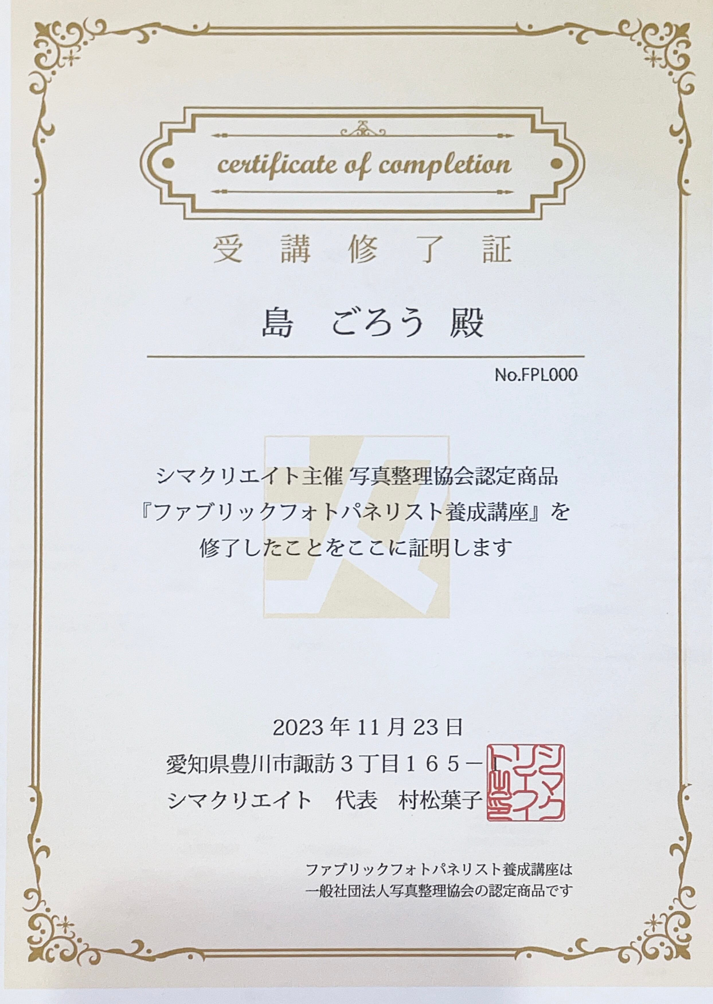 受講当日にファブリックフォトパネリスト認定が可能ですので、直近のイベント等で使用されたい方におススメです。